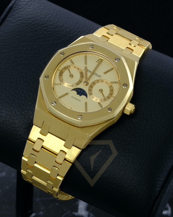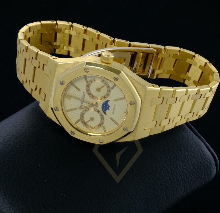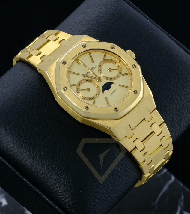 Buy Audemars Piguet Royal Oak Day Date Moon Yellow Gold in UAE, and you not only get to own a piece of horological excellence but also experience the unparalleled service of Watchlab Boutique. With a rich history of working in leading auction houses and watch manufacturers, our community of experts offers transparent and high-quality service, ensuring that you get the best value for your investment. Whether you are looking to immerse yourself in the world of luxury watches or seeking expert advice on your next purchase, visit our boutique in Dubai for an unparalleled experience.