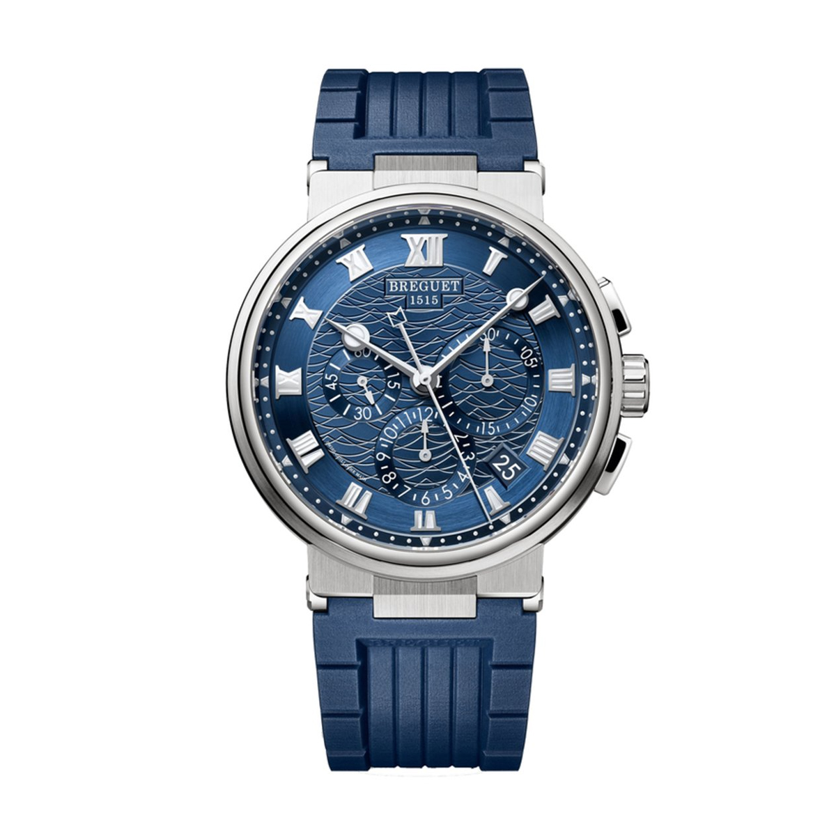 This stunning Breguet Watch Marine Chronograph 2019 White Gold Blue Dial, with a 42.3 mm case crafted from the finest white gold, showcases the brand's commitment to excellence. The mesmerizing blue dial, combined with a durable rubber strap, creates a perfect blend of style and functionality. This timepiece is a masterpiece of watchmaking, featuring a mechanical self-winding movement, chronograph, and date complications, all protected by a scratch-resistant sapphire crystal. With a water resistance of 100 meters, this watch is suitable for everyday wear and occasional underwater adventures.
