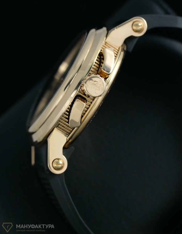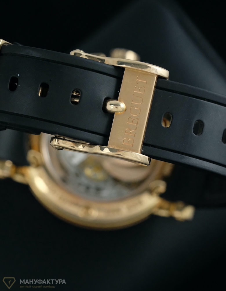 This stunning timepiece boasts a 42 mm case crafted from the finest rose gold, perfectly complemented by a rubber strap that ensures a comfortable fit. Paired with a sleek design, the watch comes with its original box and papers, a testament to its authenticity. With complications that include a mechanical self-winding movement, chronograph, and date functions, the Breguet Watch Marine Chronograph Rose Gold is not just a statement piece but also a precision timekeeping device. The sapphire crystal glass adds an extra layer of sophistication and durability, while the watch's ability to withstand depths of up to 100 meters is a testament to its engineering prowess.
