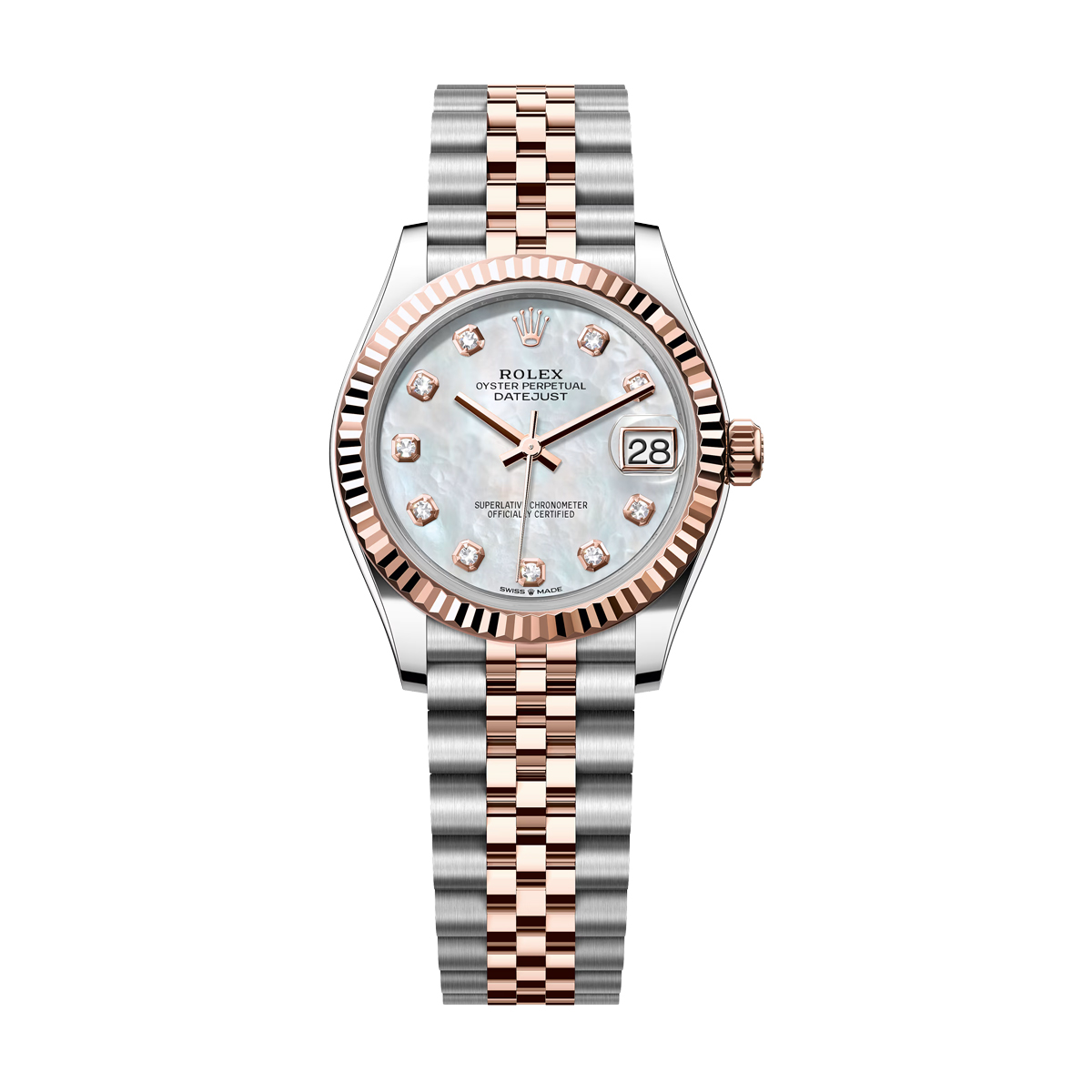 Rolex Datejust 31mm Steel and Rose Gold Mother of Pearl Diamond Dial Jubilee Bracelet