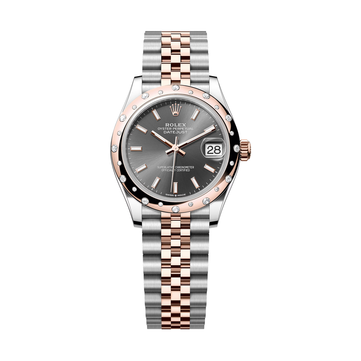 Rolex Datejust 31mm Steel and Everose Gold Grey Dial Domed Diamond Bezel Jubilee