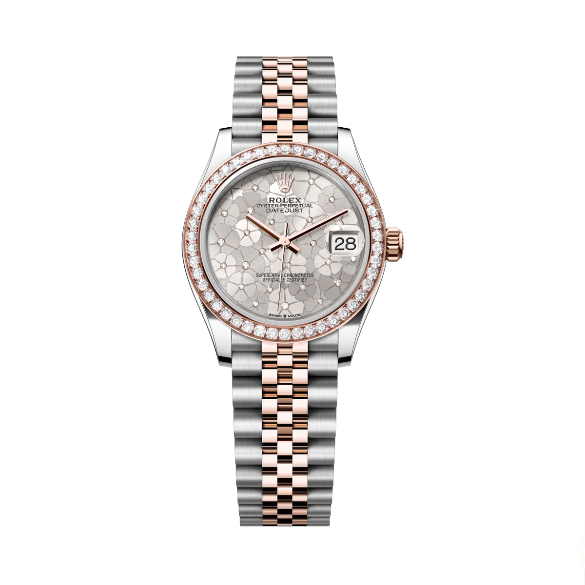 Rolex Datejust 31mm Steel and Rose Gold Diamond bezel Floral Dial jubilee