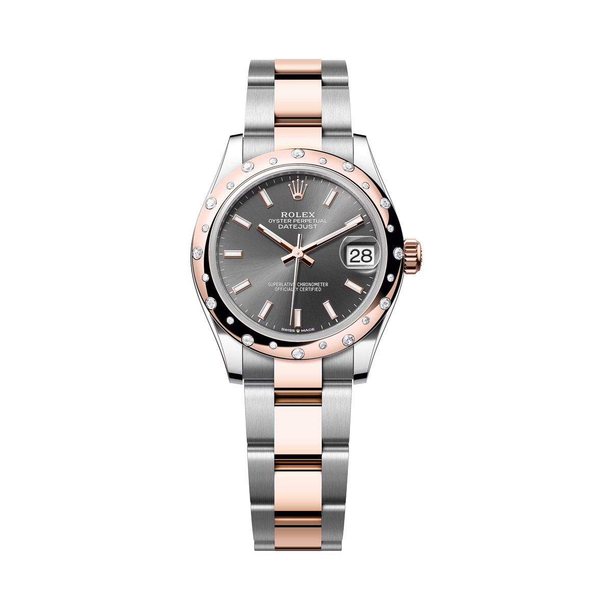 Rolex Datejust 31mm Steel & Everose Gold Dark Grey Dial Domed Diamond Bezel Oyster Bracelet
