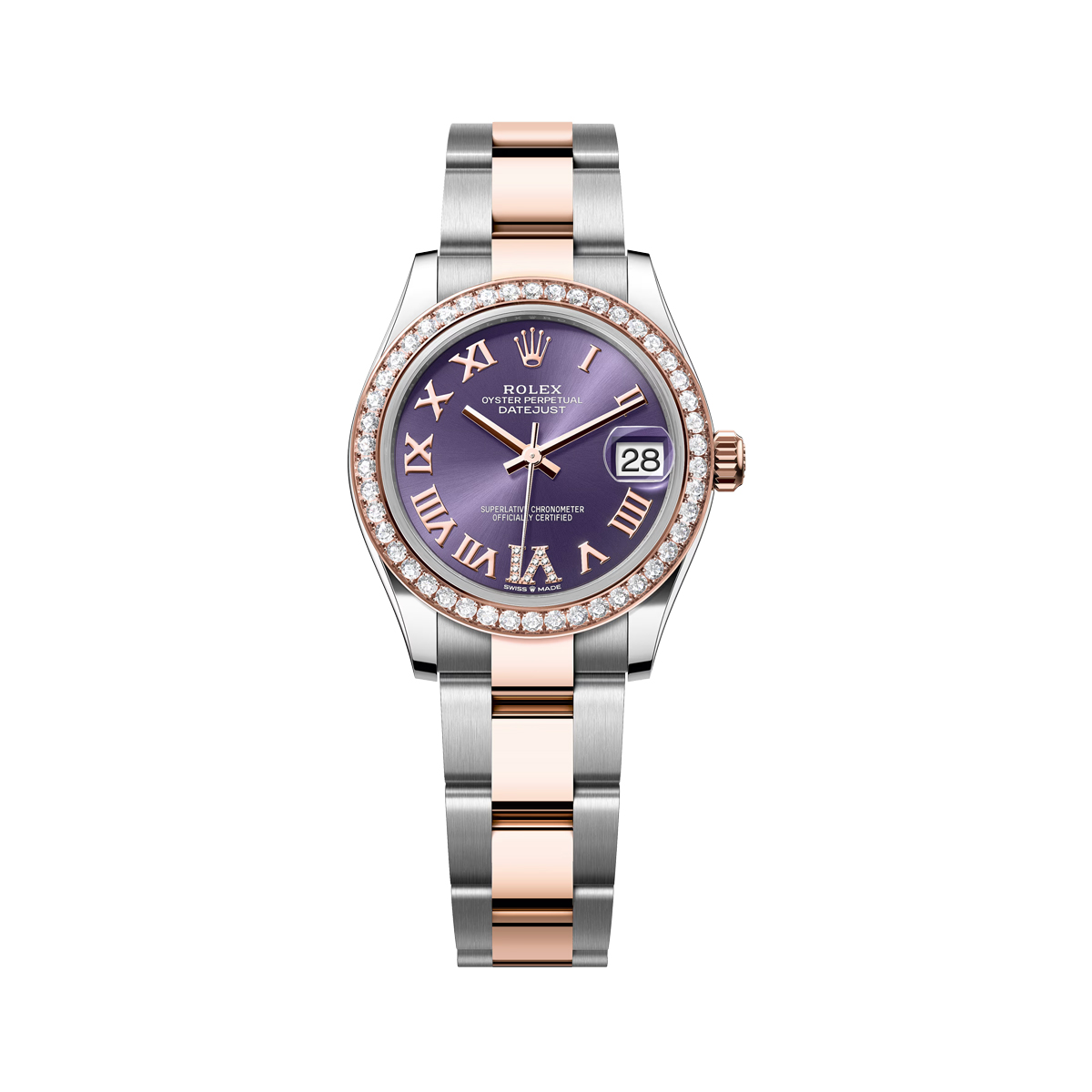 Rolex Datejust 31mm Steel & Rose Gold Diamond bezel Purple Roman VI Diamond Dial Oyster Bracelet