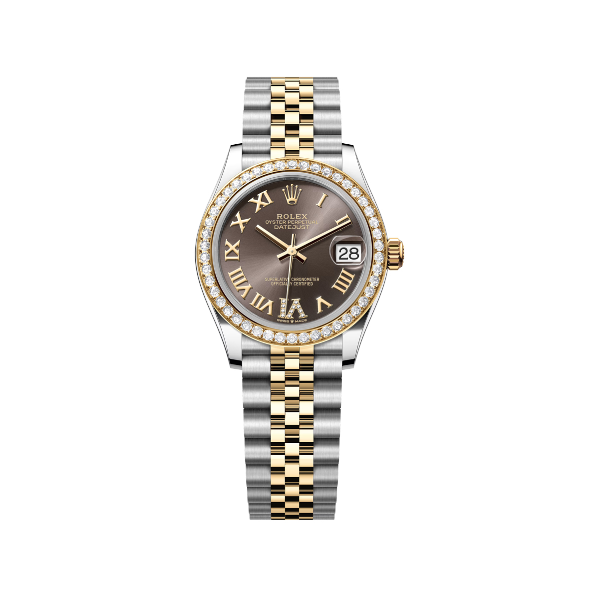 Rolex Datejust 31mm Steel & Yellow Gold Grey VI Diamonds Dial Diamond Bezel Jubilee
