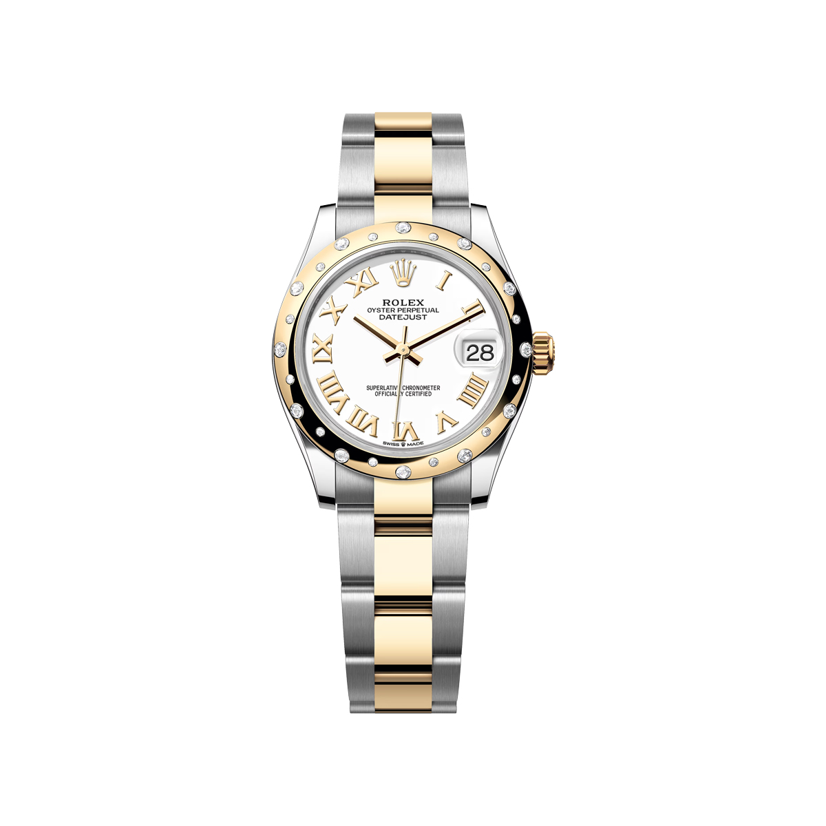 Rolex Datejust 31mm Steel & Yellow Gold White Dial Domed Diamond Bezel Oyster Bracelet