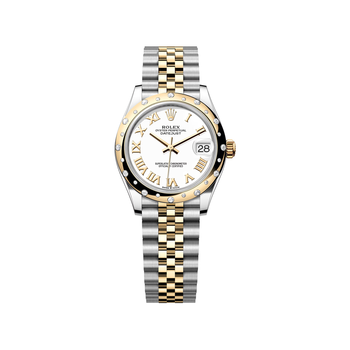 Rolex Datejust 31mm Steel & Yellow Gold White Roman Domed Diamond Bezel Jubilee