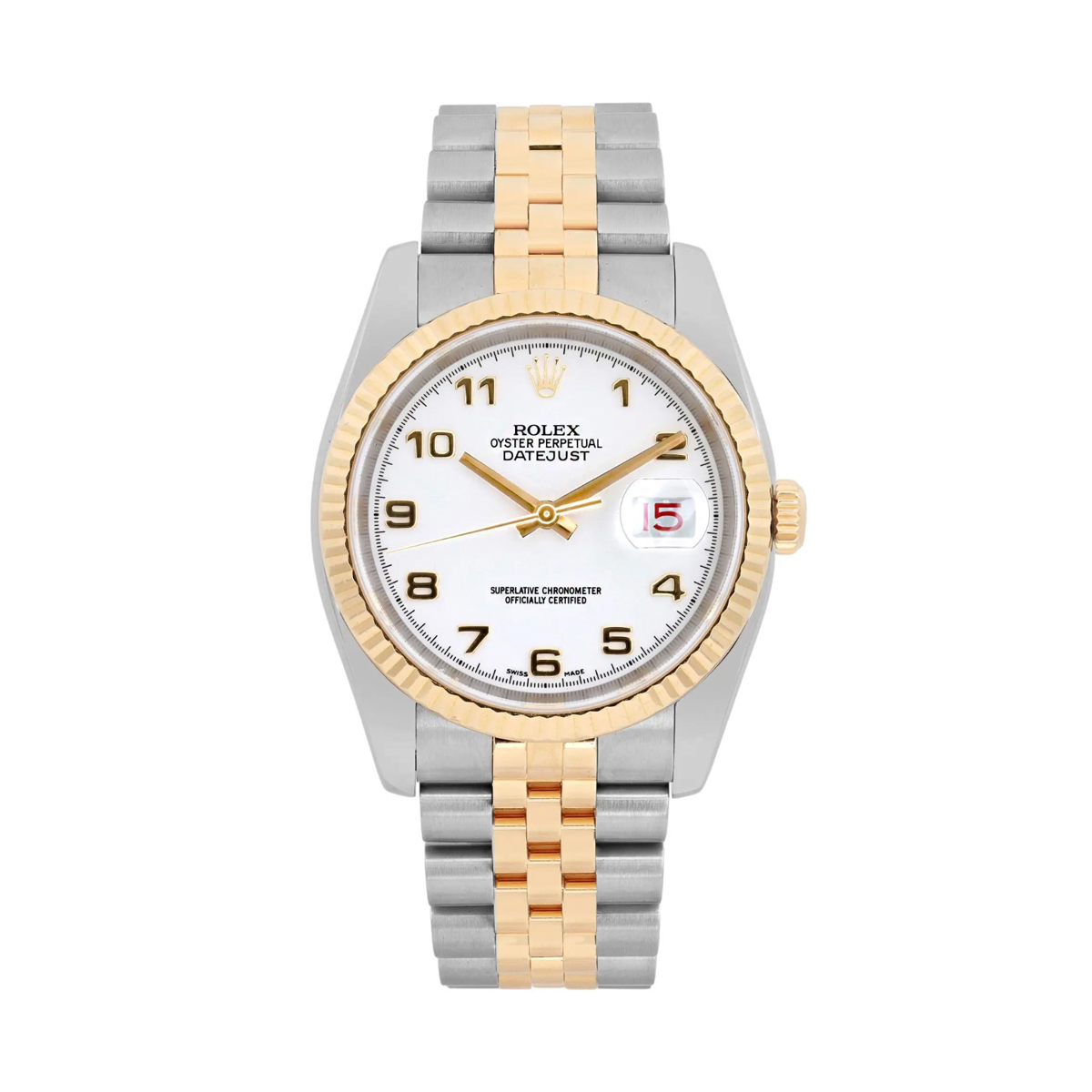 Rolex Datejust 36mm Steel & Yellow Gold White Arabic Dial Roulette Date