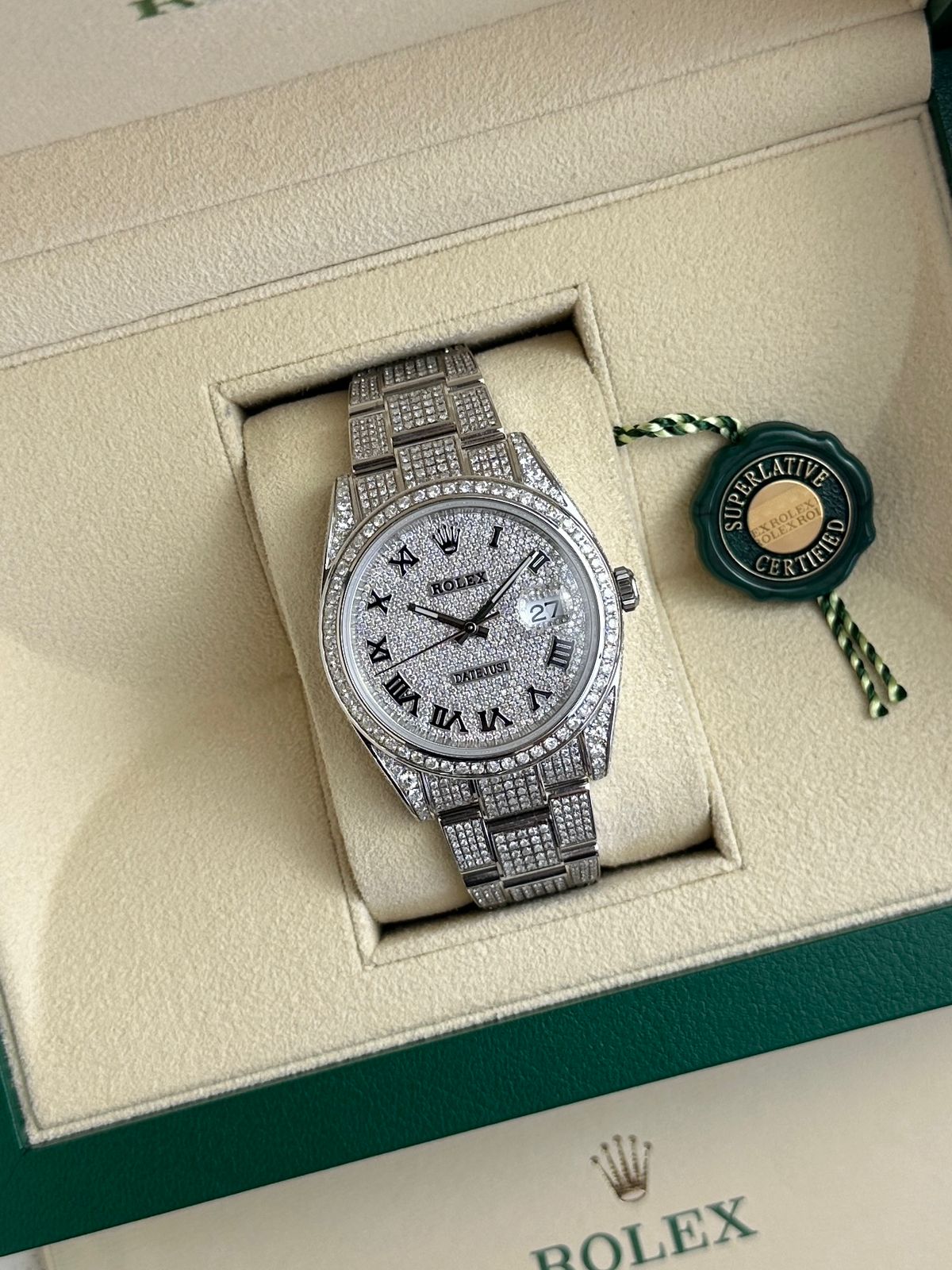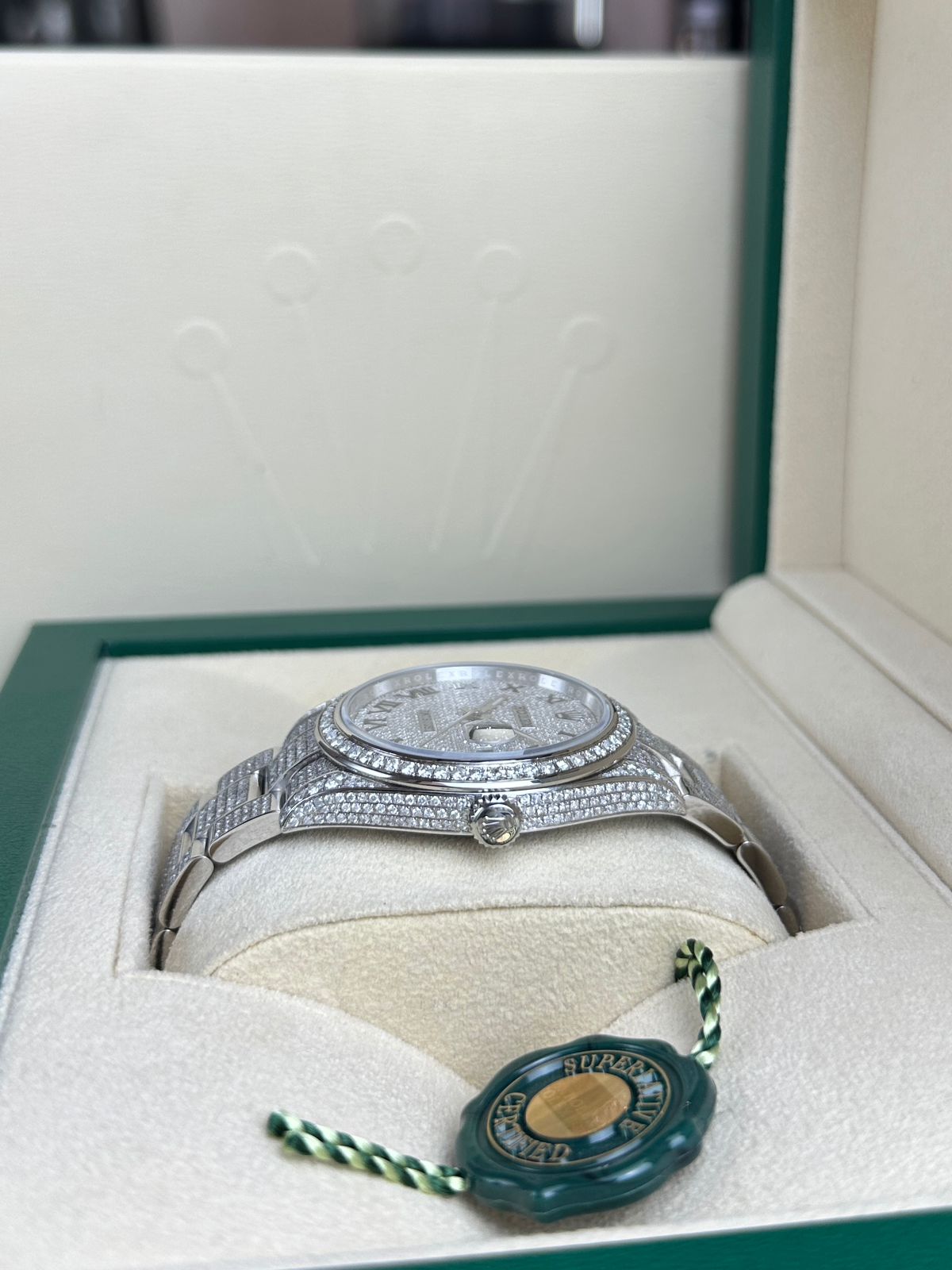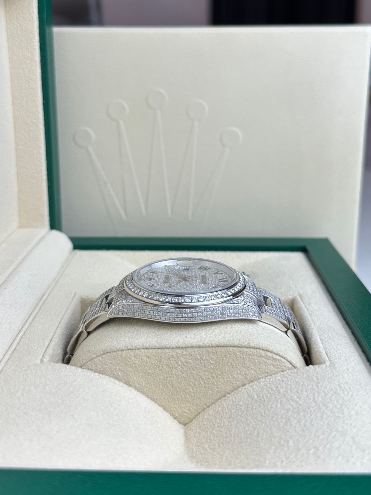 At Watchlab, you can immerse yourself in the world of luxury watches, where the expertise of our professionals is at your service. Buy Rolex Datejust 41mm Full Pave Iced Out Diamonds in UAE, and you will not only own a piece of horological art but also gain access to the knowledge and experience of our experts.
