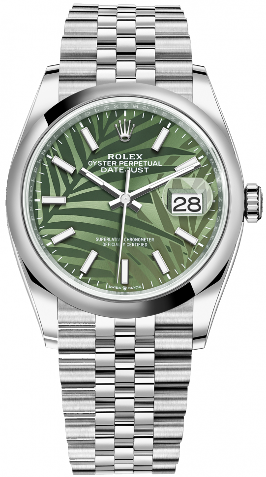 Rolex Datejust 36 mm Steel Green Palm Motif Dial Jubilee bracelet