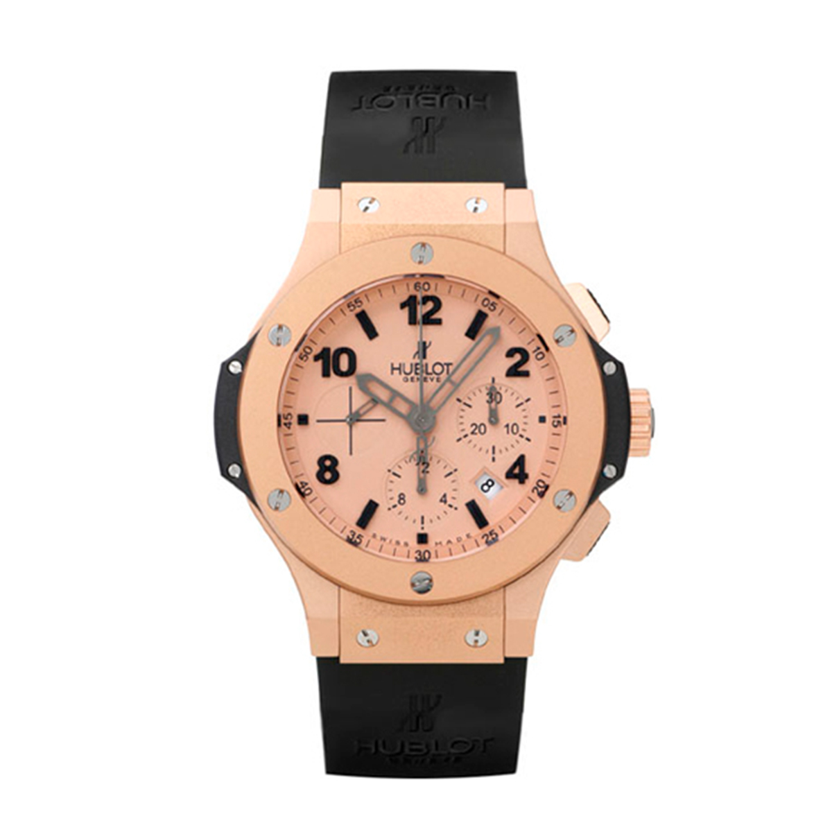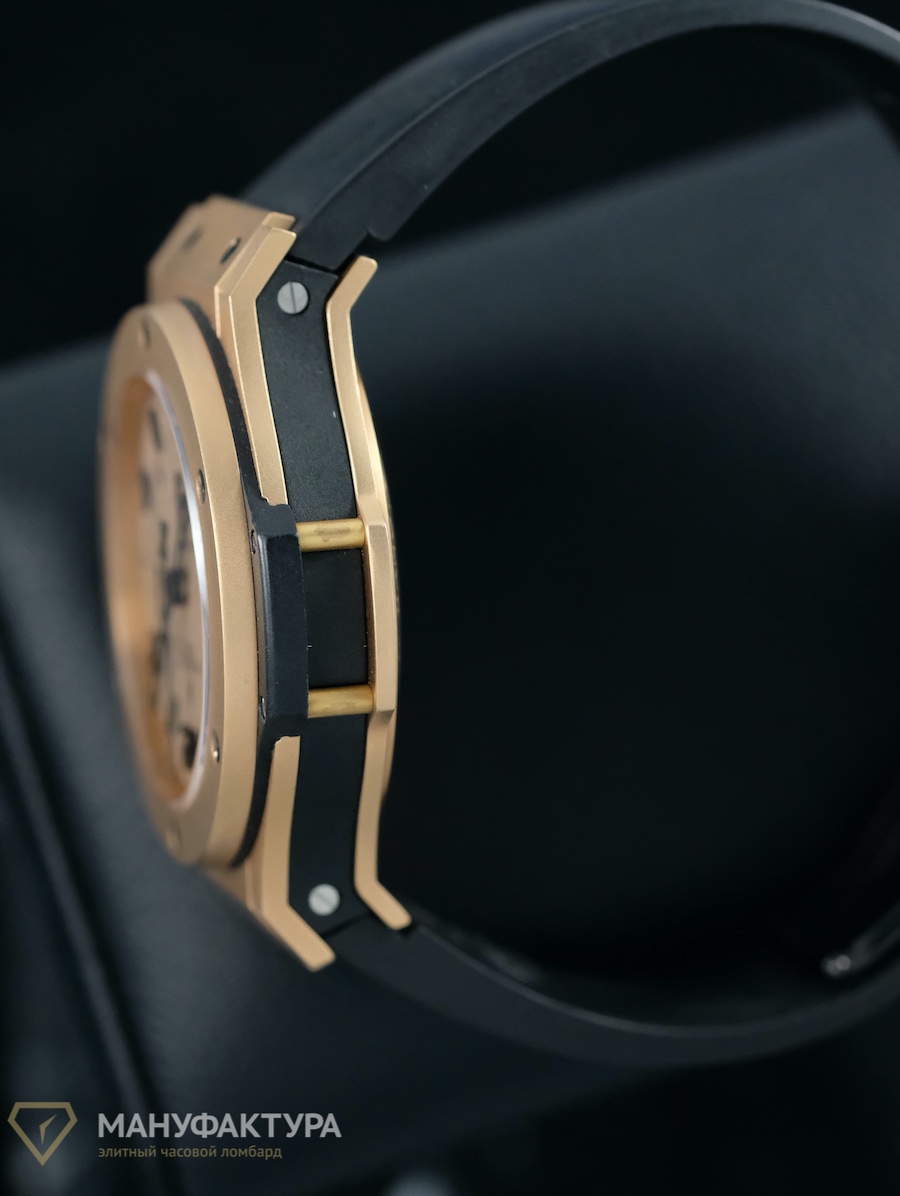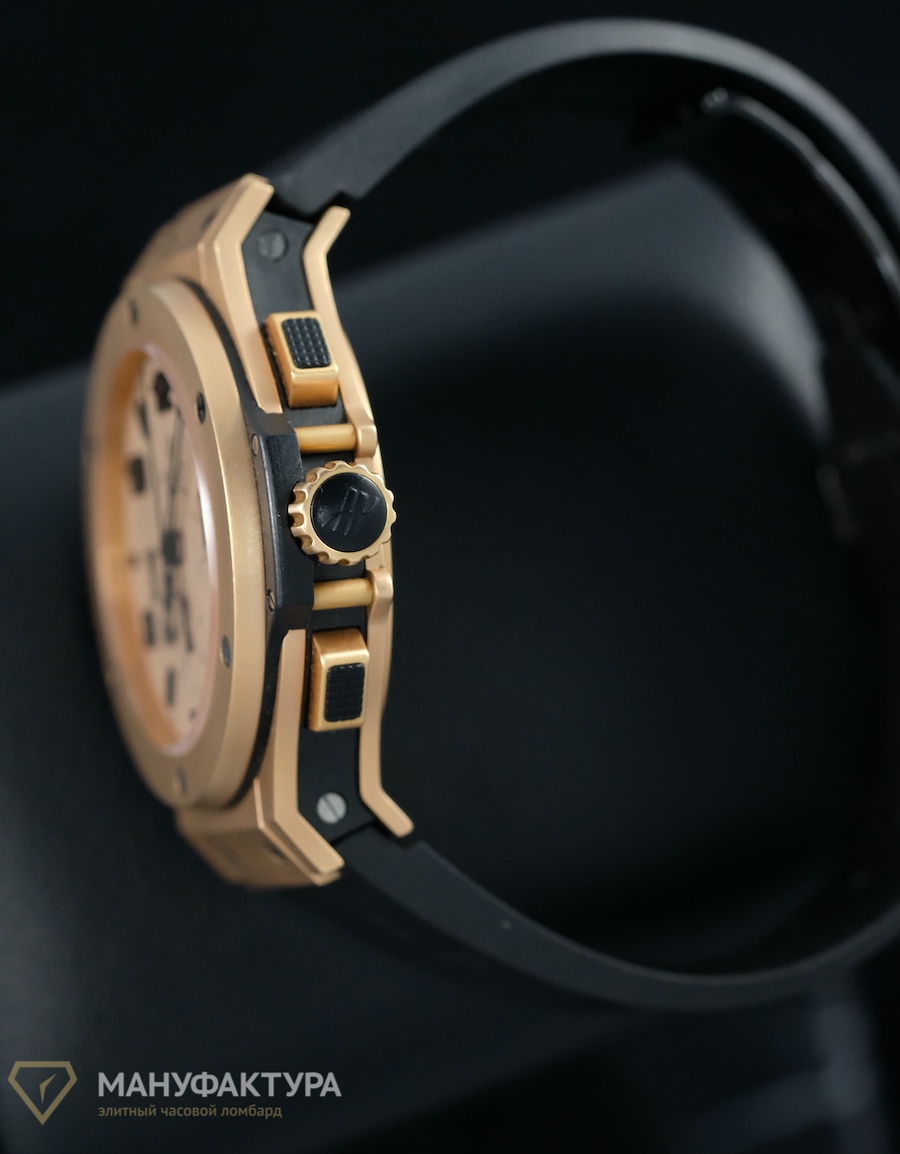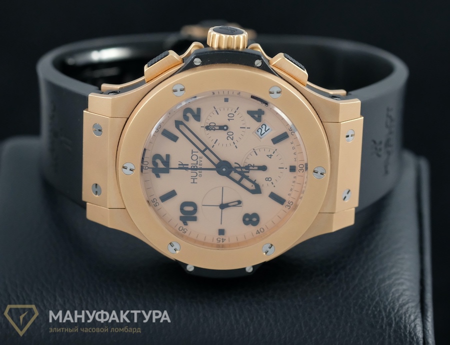 This stunning Hublot Big Bang Gold Mat, with its 44 mm case crafted from exquisite rose gold, is a true testament to the brand's attention to detail and innovative design. Paired with a rubber strap, this watch not only makes a bold statement but also offers the comfort and versatility that any watch enthusiast desires. The sapphire crystal glass provides a clear view of the mechanical self-winding movement with chronograph complications, a true marvel of watchmaking.