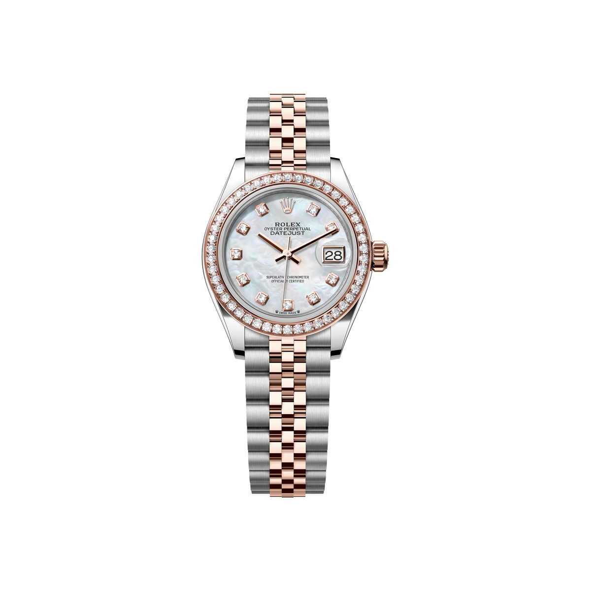 Rolex Lady-Datejust 28mm Steel & Rose Gold Mother of Pearl Diamond Dial Diamond Bezel Jubilee