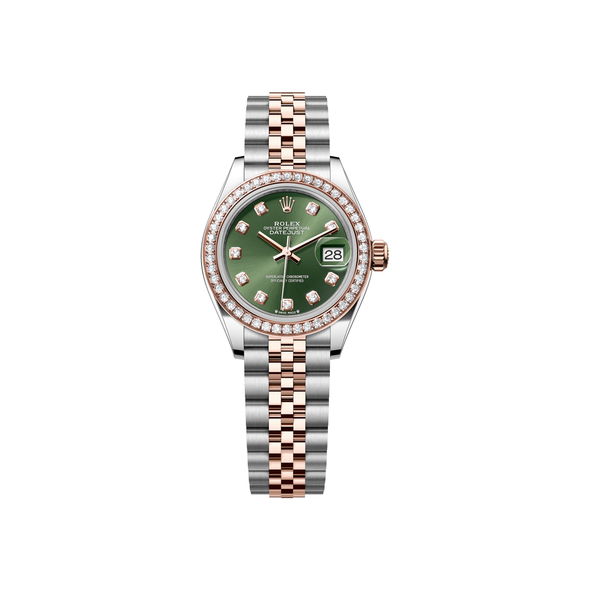 Rolex Lady-Datejust 28mm Steel & Rose Gold Olive Green Diamond Dial Diamond Bezel Jubilee
