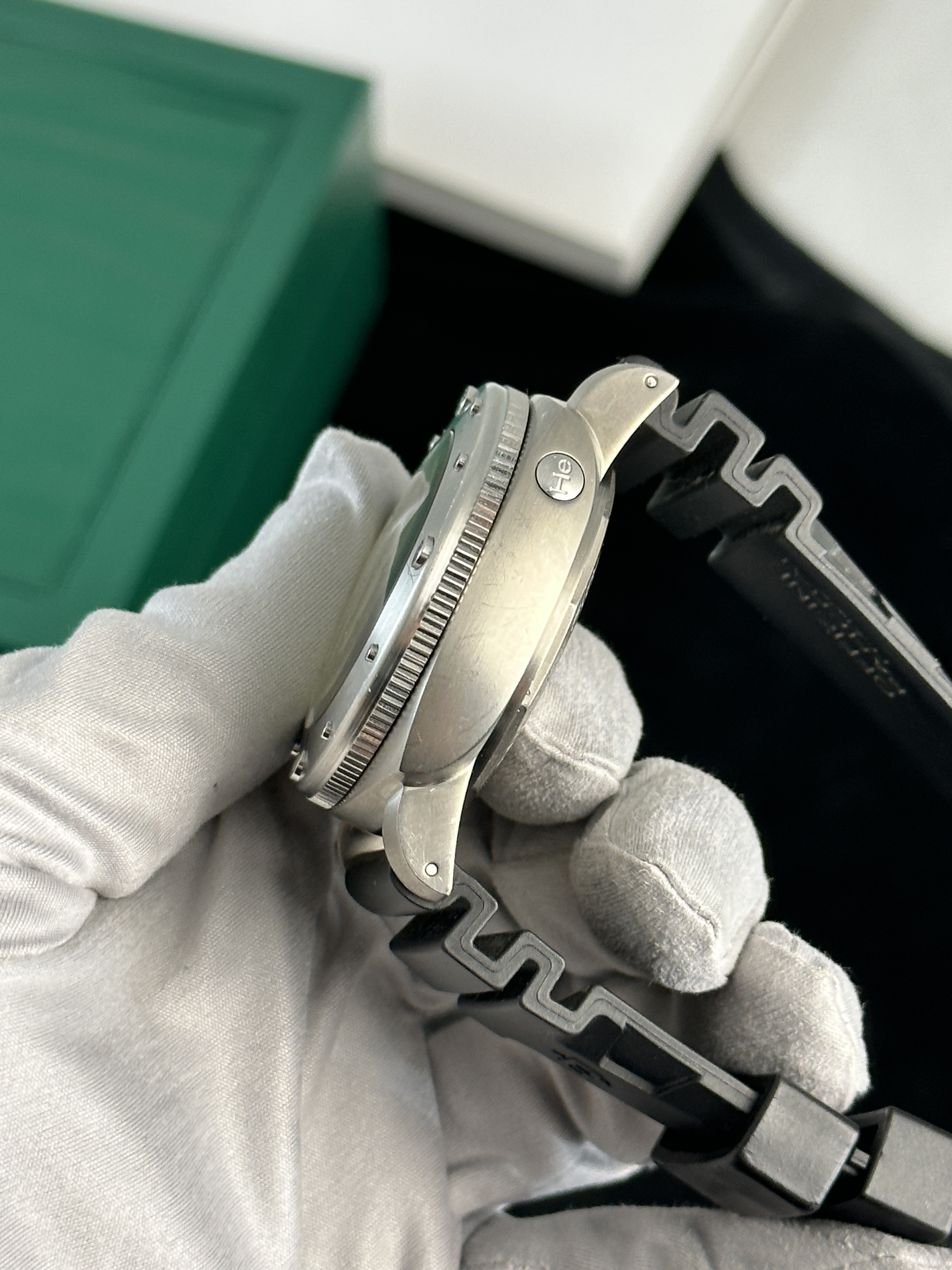 Какой часовой бренд ассоциируется у вас с морскими глубинами и непревзойденным мастерством? Безусловно, это Panerai, и именно его модель Luminor Submersible 1950 Chrono 1000m Slytech - 47 MM #001 мы предлагаем вашему вниманию в нашем часовом салоне «Мануфактура». Этот шедевр итальянского часового искусства, выпущенный в 2005 году, поражает своей функциональностью и элегантностью.