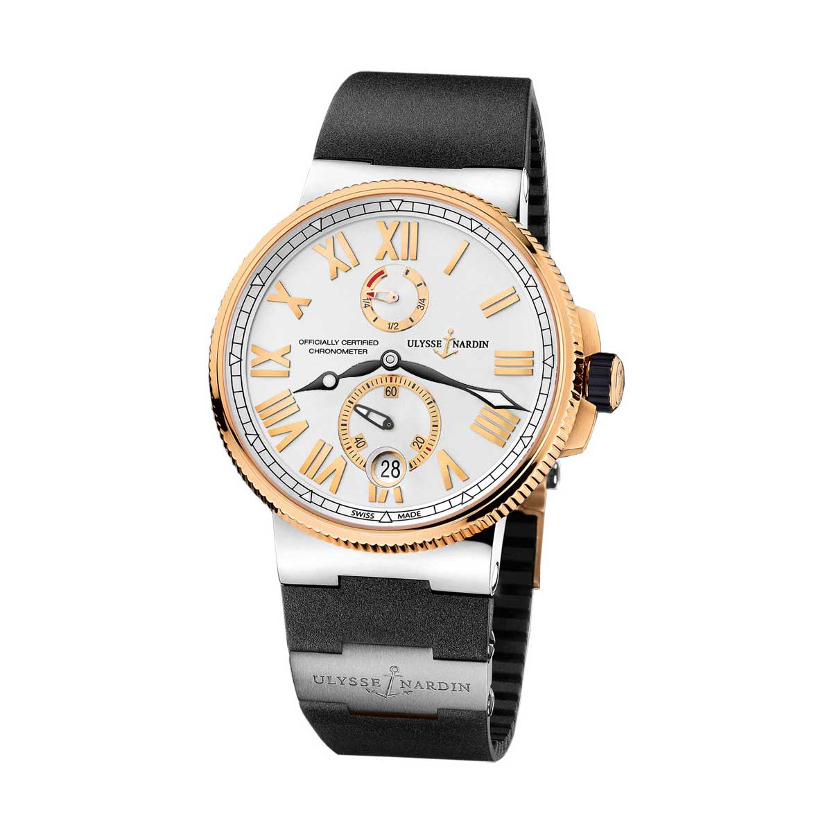 Ulysse Nardin Marine Chronometer Manufacture 45mm in Rose Gold On Black Rubber with Titanium Element Strap with Silver Dial