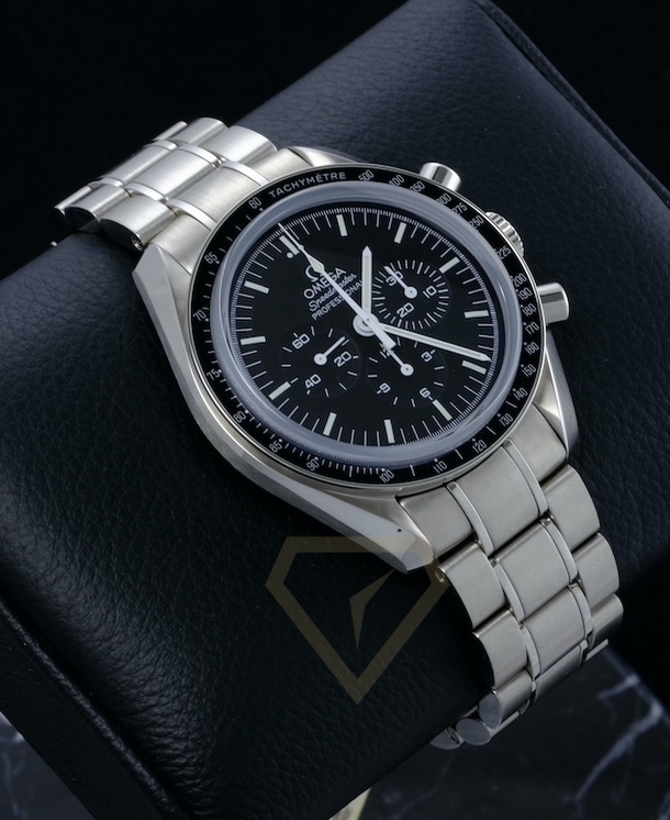 This Omega Speedmaster Moonwatch Professional Chronograph 42 mm, with its sleek 42 mm steel case and robust bracelet, is not just a timekeeping masterpiece but a work of art. Powered by the caliber OMEGA 1863, it's a mechanical hand-wound marvel that offers a 48-hour power reserve and the thrill of a chronograph. The sapphire glass and 50 meters of water resistance ensure that your timekeeping companion is as resilient as it is elegant.