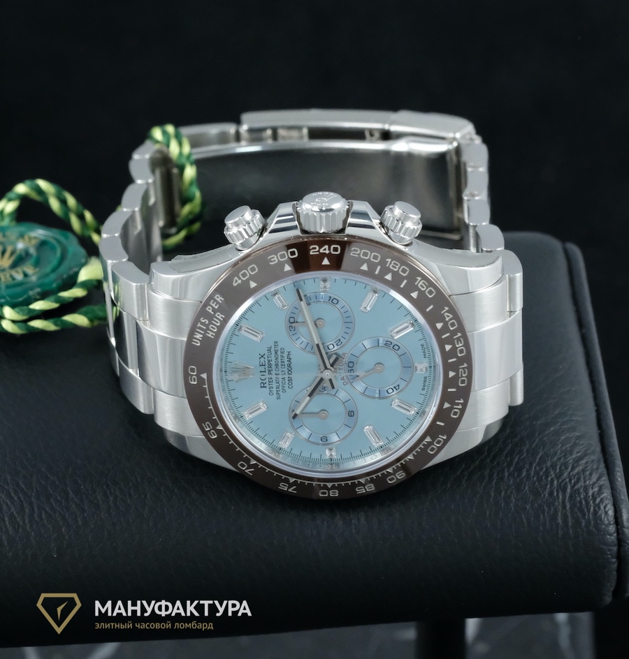 Buy Rolex Cosmograph Daytona Platinum Baguette Diamond Dial in UAE, and you are not just purchasing a watch; you are investing in a piece of horological history. This timepiece comes complete with its original box and papers, further solidifying its authenticity and value. But that's not all; with a 5-year warranty, you can rest assured that your luxury timepiece is protected against any manufacturing defects.