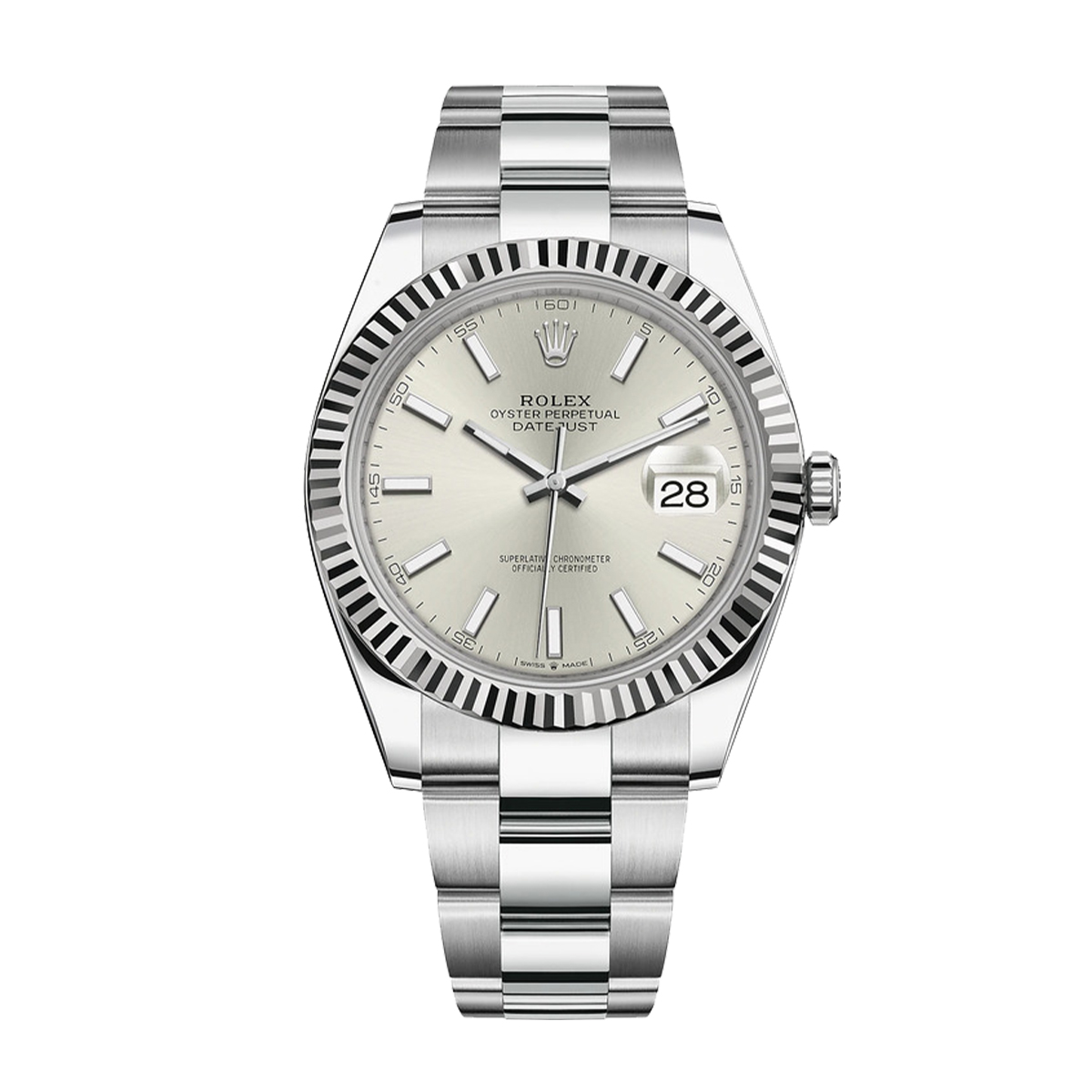 The Rolex Datejust 41mm Silver Dial 2021, with its 41mm white gold case, exudes sophistication and poise. The mechanical self-winding movement, caliber 3235, is a marvel of precision and engineering, offering a 70-hour power reserve. The sapphire crystal glass provides a crystal-clear view of the sleek, silver dial, which features a date complication at 3 o'clock. Paired with a bracelet, this timepiece is not only functional but also a stunning accessory.