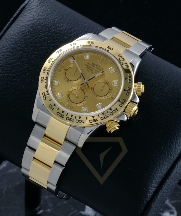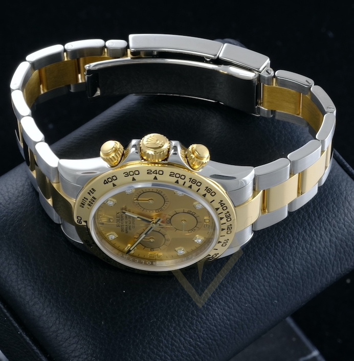 The Rolex Oyster Perpetual Cosmograph Daytona Diamond Dial 116503-0006 is a stunning example of the brand's commitment to innovation and craftsmanship. With a 40mm combined case, this watch showcases Rolex's ability to fuse different materials in a seamless and harmonious design. The bracelet, meticulously crafted to provide comfort and sophistication, perfectly complements the watch's sleek profile.