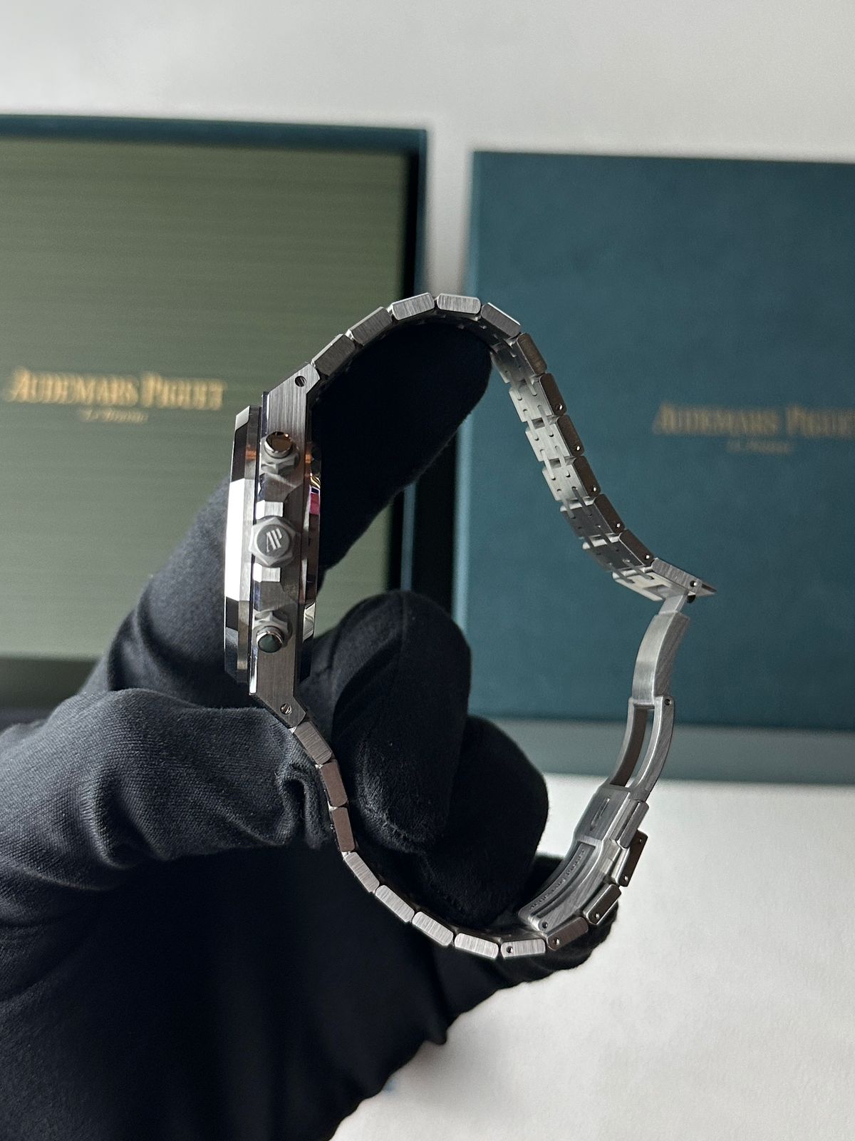 Buy Audemars Piguet Royal Oak Chronograph 41mm Blue Dial in UAE and become a part of this exclusive world, where every timepiece tells a story of excellence and tradition. Whether you are a seasoned collector or just beginning your watch journey, this stunning Audemars Piguet is sure to captivate and inspire.