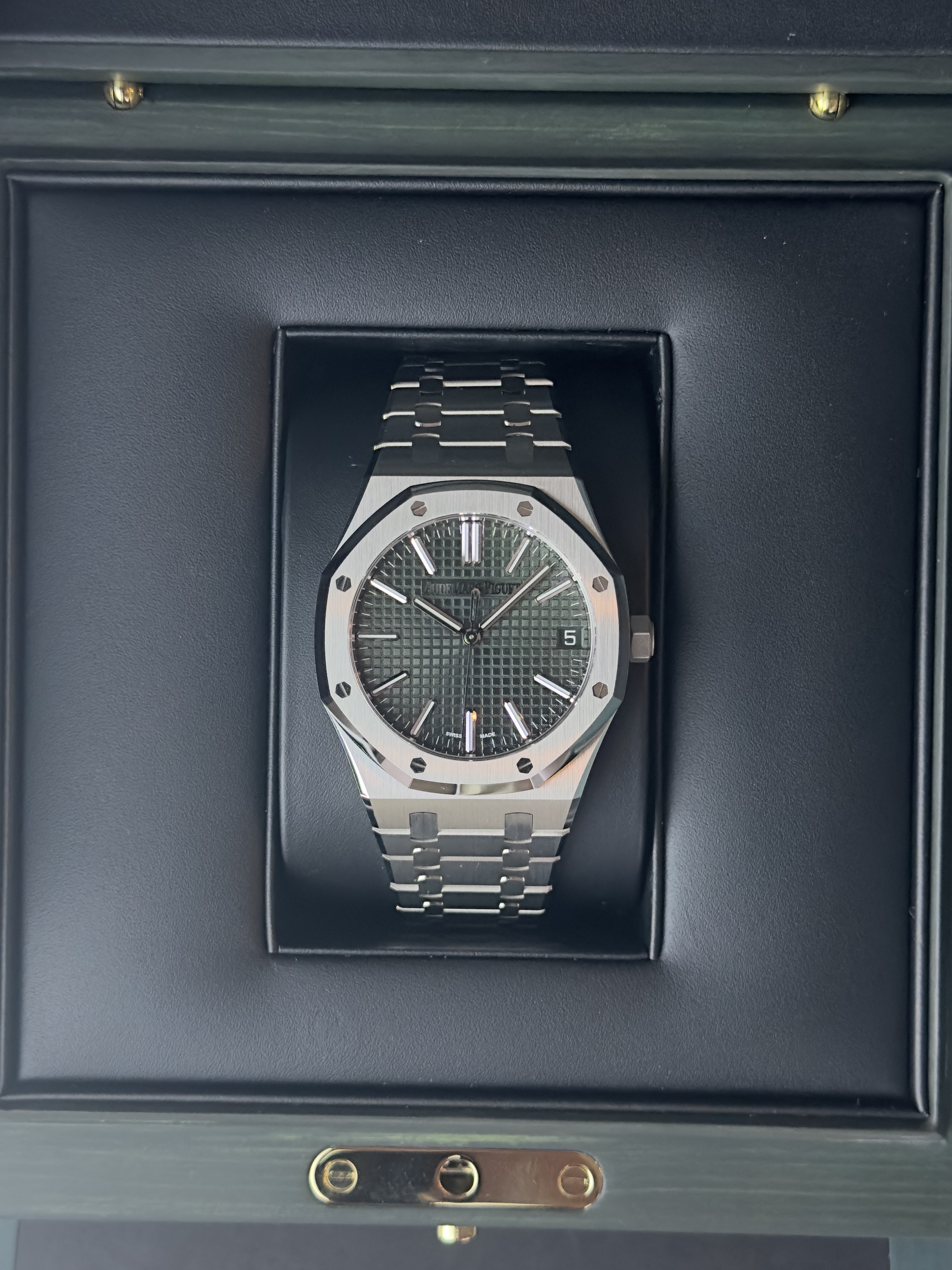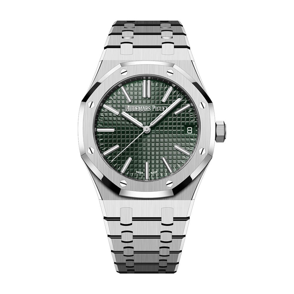 Buy Audemars Piguet Royal Oak SELFWINDING Green dial 41mm in UAE and discover a world where every detail is meticulously crafted to perfection. This watch is not just a timekeeping device but an heirloom-quality piece that can be passed down through generations. With a 5-year warranty and an impressive 70-hour power reserve, you can be confident in the quality and reliability of this masterpiece.