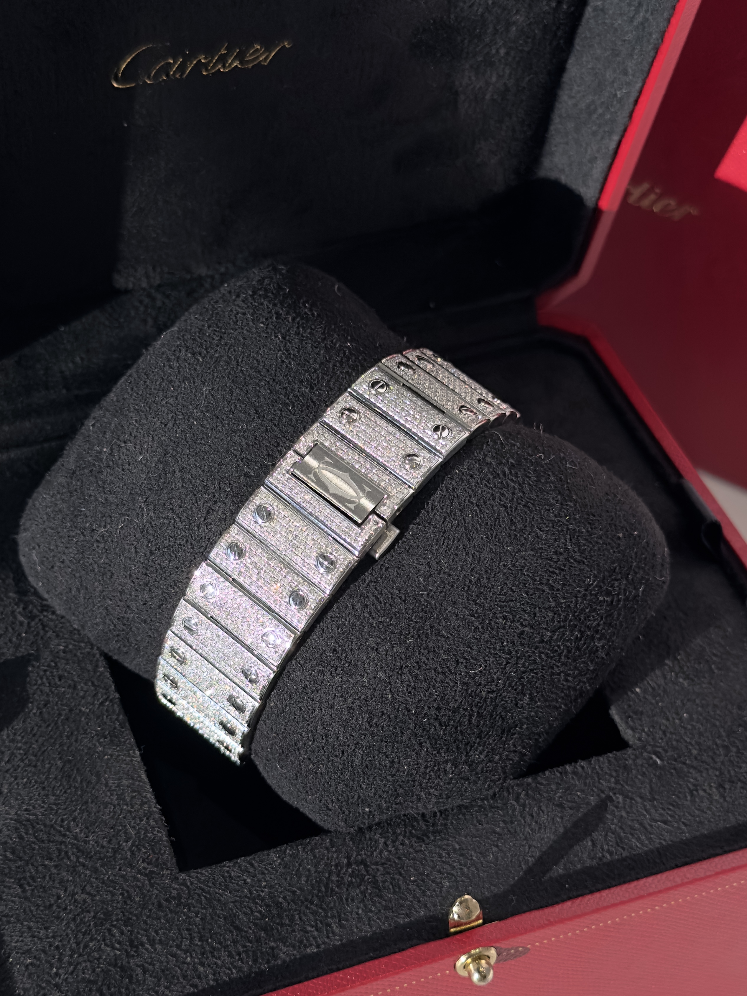 But our relationship doesn't end with a purchase. We also offer the opportunity to sell Cartier Santos Custom Diamond Set Blue Dial in Dubai or trade-in your luxury watch and jewelry items. Whether you're looking to upgrade, diversify your collection, or simply liquidate an asset, we are here to help. Our expertise and knowledge in the field ensure that you get the best value for your piece, making us the go-to destination for all your luxury timepiece needs. So, why wait? Elevate your style with the Cartier Santos Custom Diamond Set Blue Dial today, and experience the pinnacle of horology with Watchlab Boutique.