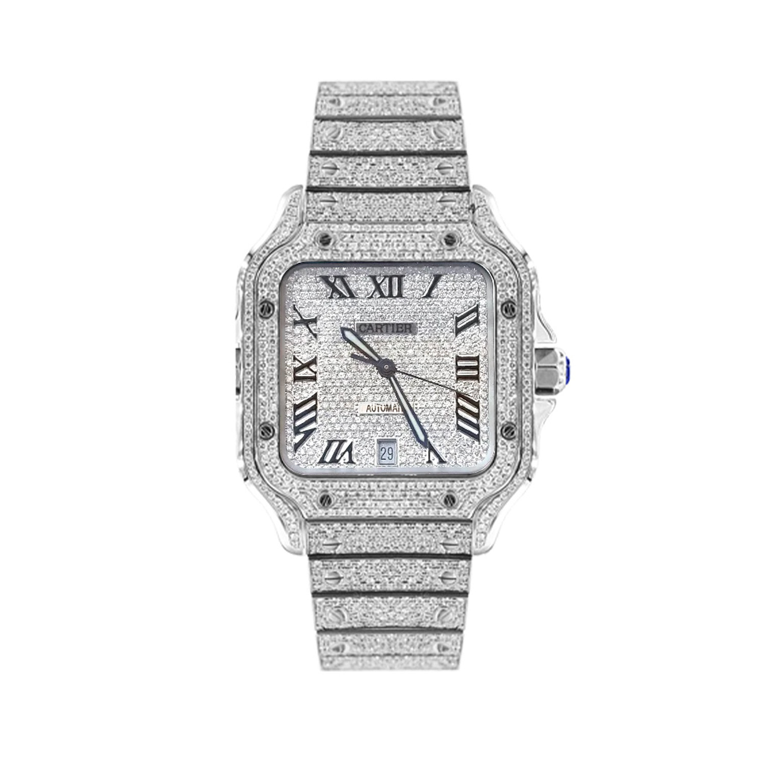 Step into a world of timeless luxury with this exquisite creation, designed for the elite. Buy Cartier Santos Large Custom Diamond Set Pave Dial in Dubai and experience the pinnacle of horology at WATCHLAB, Dubai's premier destination for exquisite luxury watches.