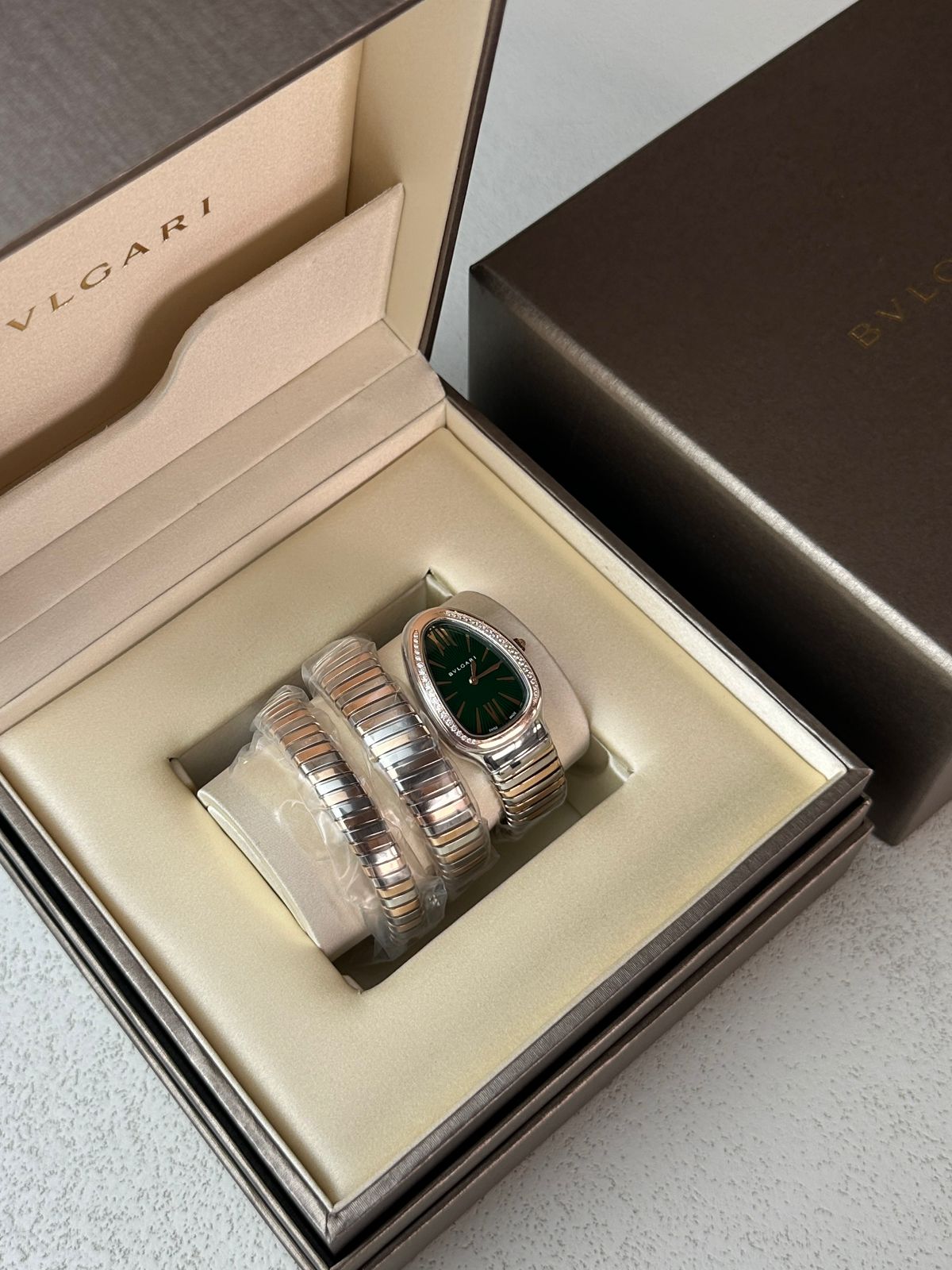 Bvlgari Serpenti Tubogas 35mm Steel & Rose Gold Green Dial Diamonds