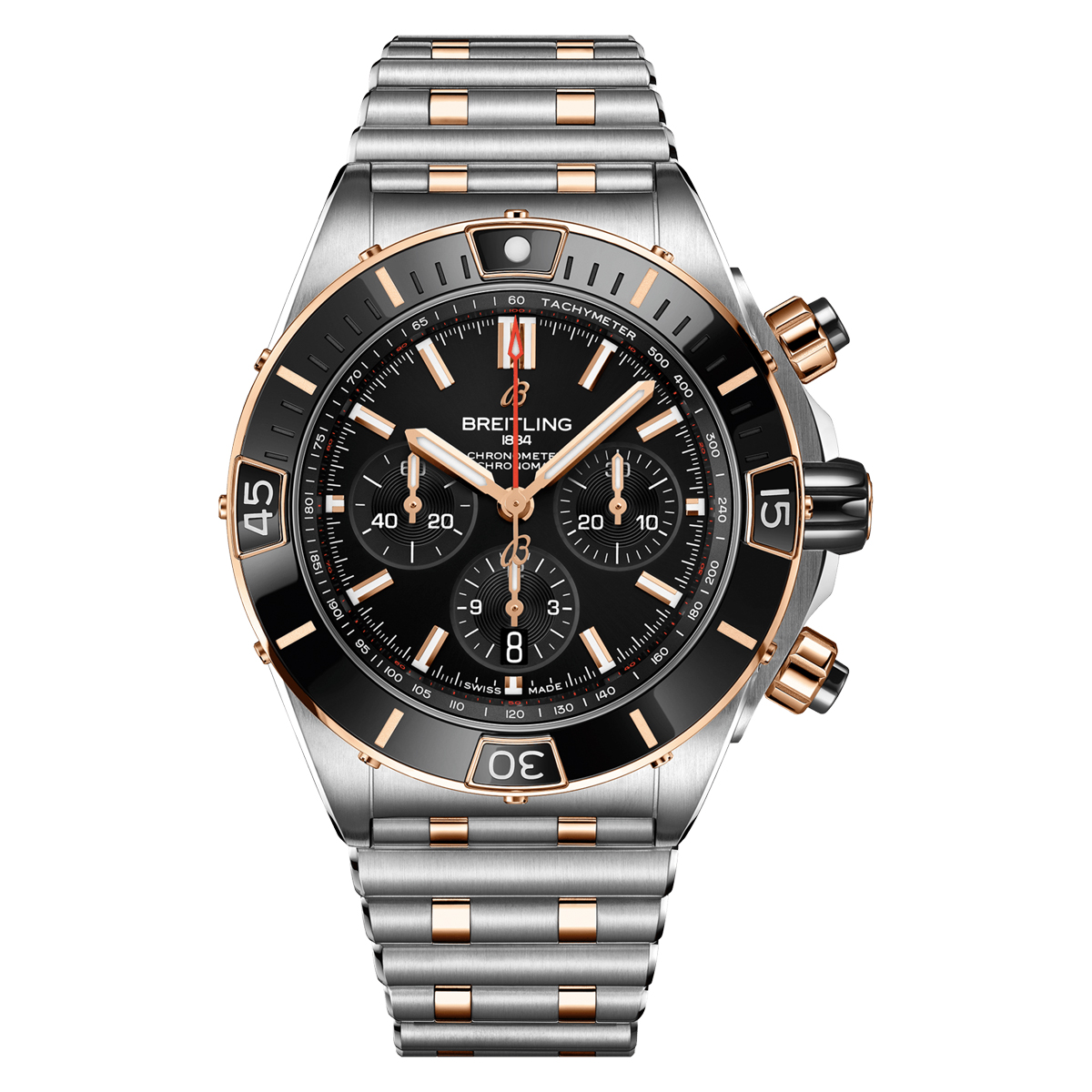 Enhance your collection with this distinguished item, a symbol of opulence and refinement. Buy Breitling Super Chronomat B01 44 Black Stainless Steel & 18K Red Gold in Dubai, a luxury watch that embodies the essence of precision and style. At Watchlab Boutique, your luxury timepiece destination, we pride ourselves on offering only the finest timepieces crafted by the most renowned watchmakers in the industry.