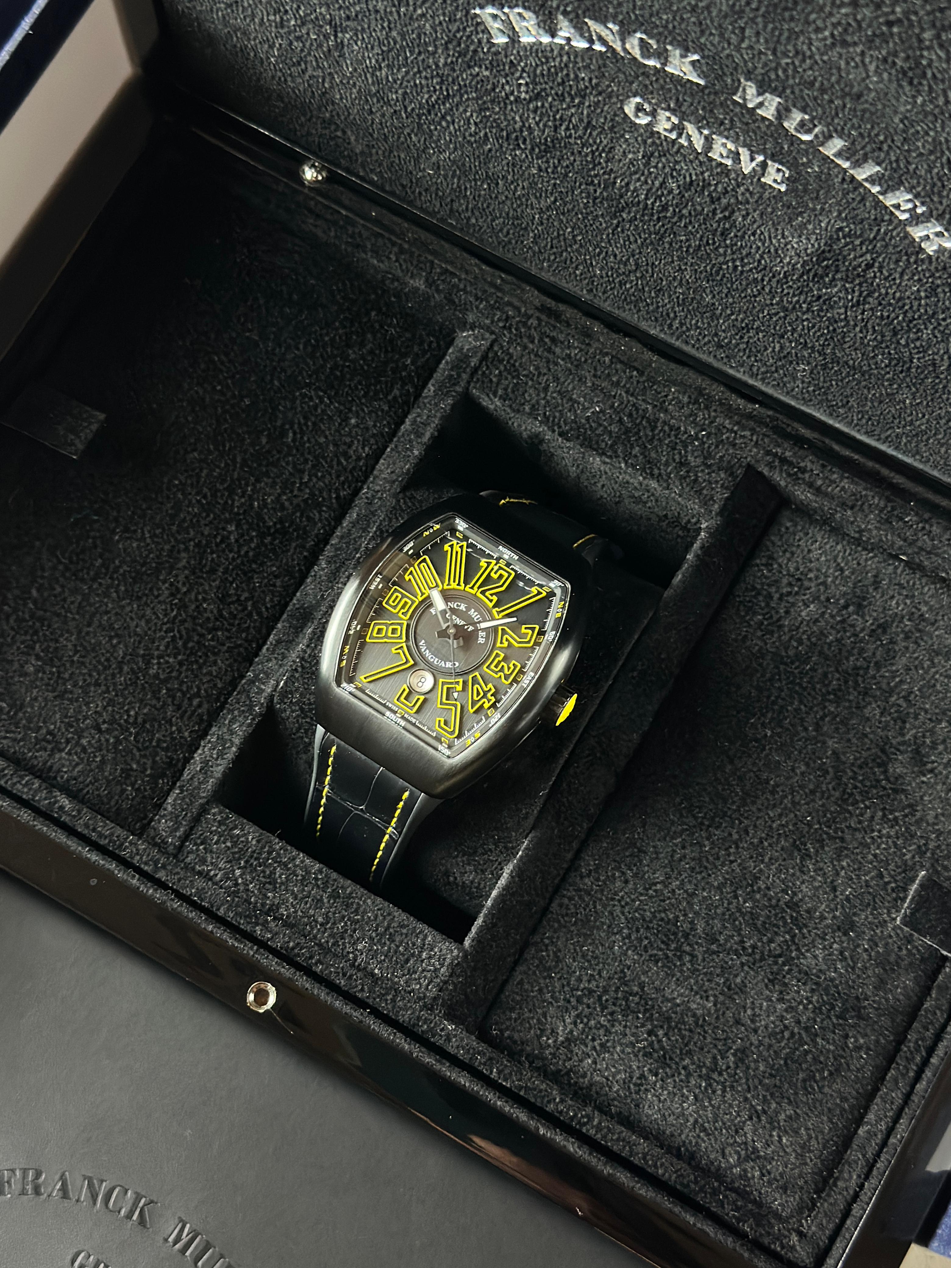 Elevate your style with this exclusive masterpiece, crafted for those who appreciate the finest in life. At the heart of Dubai's luxury watch scene, Watchlab Boutique offers you a chance to own the exceptional Franck Muller Watch Vanguard Titanium Black and Yellow Dial 45mm. Buy Franck Muller Watch Vanguard Titanium Black and Yellow Dial 45mm in Dubai and experience the pinnacle of horology, only at WATCHLAB.