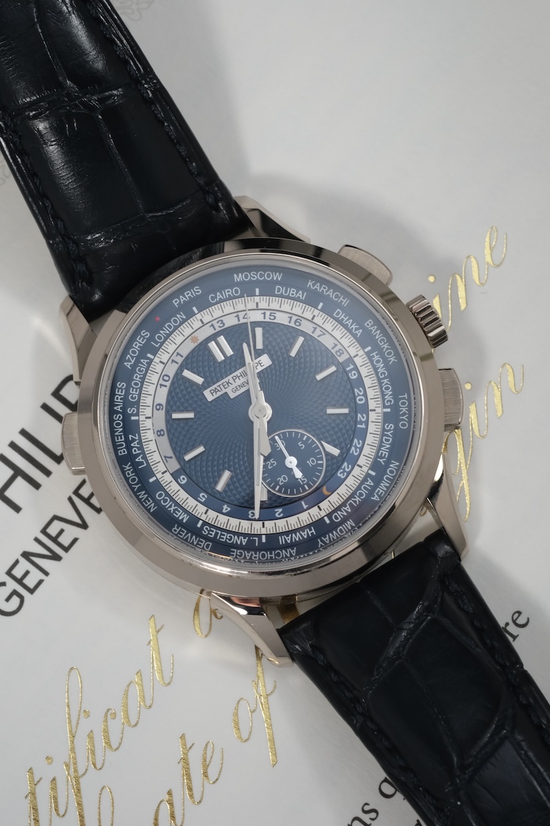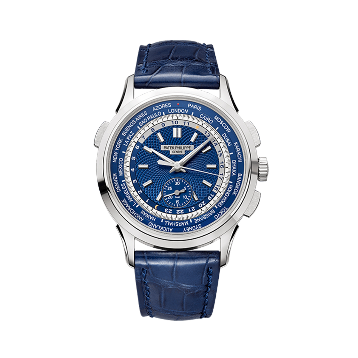 Complications Mechanical self-winding, World time, Flyback chronograph