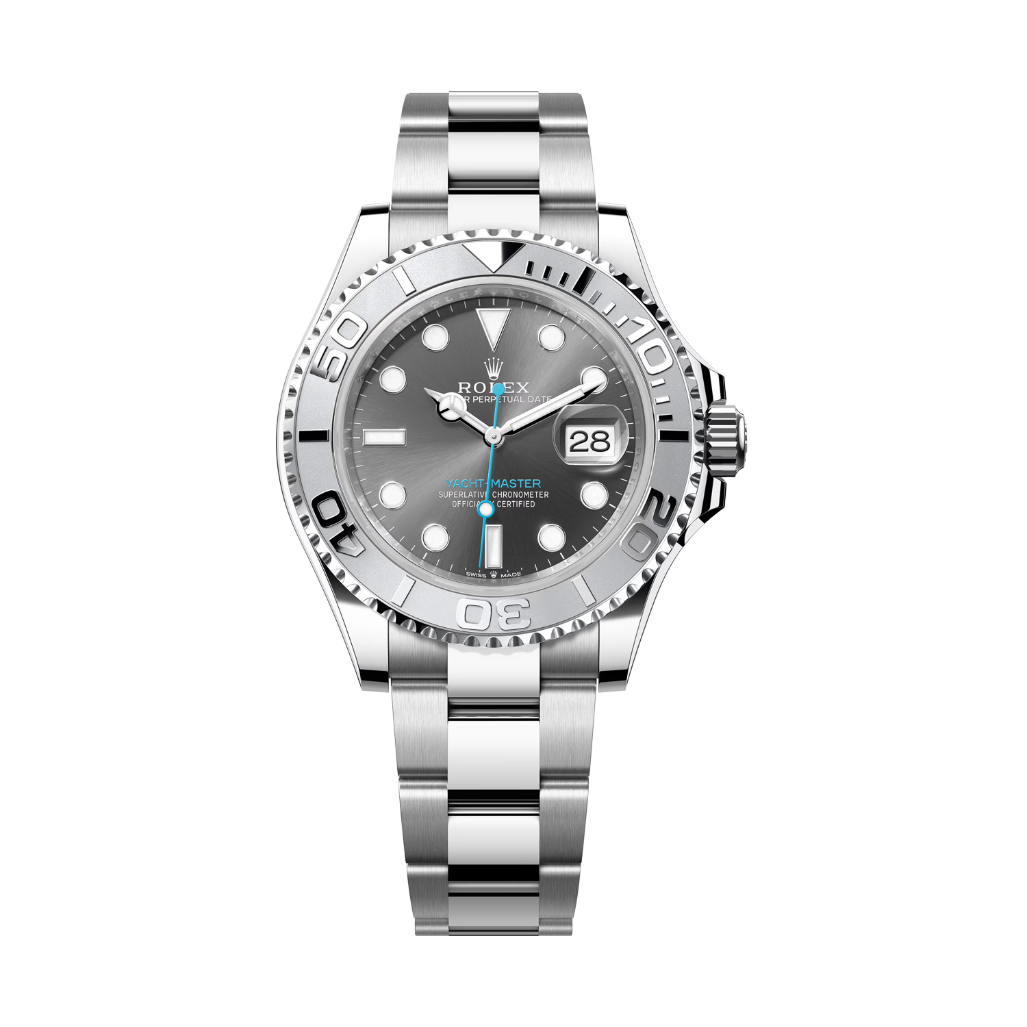 Reserved for those who desire the extraordinary, this piece embodies the pinnacle of luxury. The Rolex Yacht-Master 40 mm, a paragon of watchmaking excellence, invites you to experience the unparalleled world of horology. With its sleek Rhodium dial and robust 40 mm case crafted from the finest blend of Steel and Platinum, this masterpiece is the epitome of sophistication and resilience.