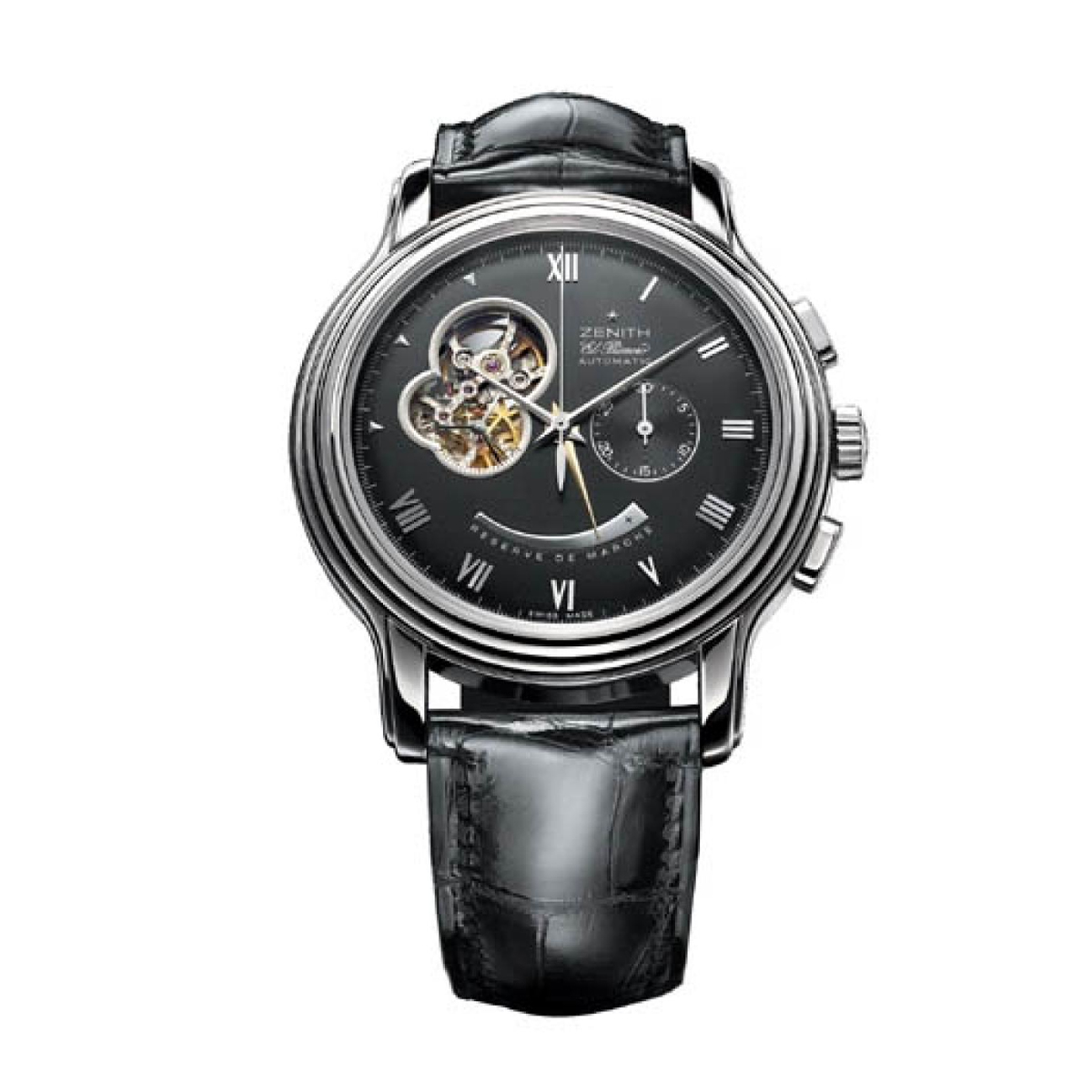 For the discerning individual, this exquisite piece offers a timeless blend of artistry and luxury. Buy Zenith Chronomaster XXT Open 03.1260.4021/22.c505 in Dubai, a watch that embodies the pinnacle of horology. This 45 mm steel case timepiece, complemented with a sleek leather strap, is a true masterpiece. At the heart of the Watch Chronomaster XXT Open beats the renowned Calibre EL PRIMERO 4021, a mechanical self-winding marvel that showcases a chronograph and power reserve indicator. The sapphire crystal glass ensures a crystal-clear view of the intricate mechanics at work.