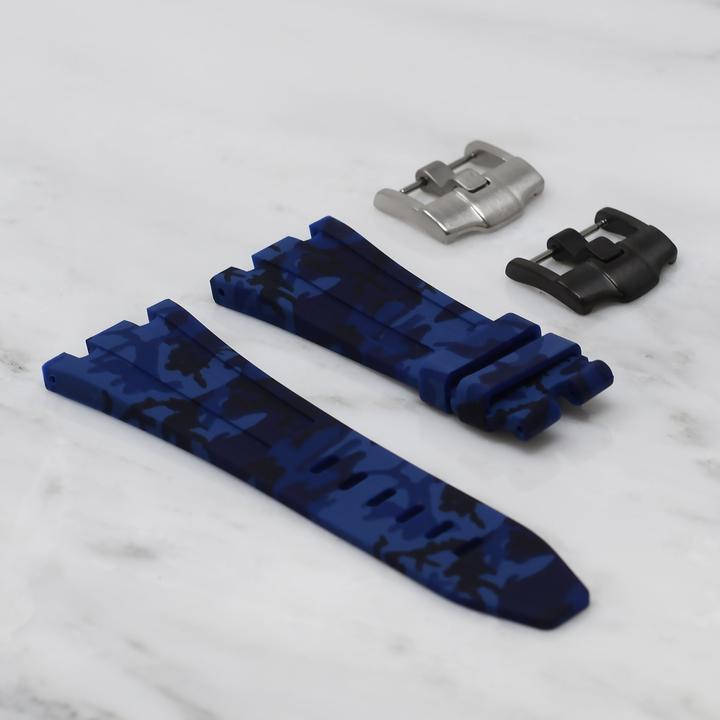 This Blue Camo AP Diver 42MM Strap is a testament to the innovative spirit of Audemars Piguet, combining functionality with sleek design. Perfect for those who dare to be different, this strap is crafted to make a statement. Whether you're looking to elevate your style or seeking a unique accessory for your timepiece, this strap is sure to turn heads.